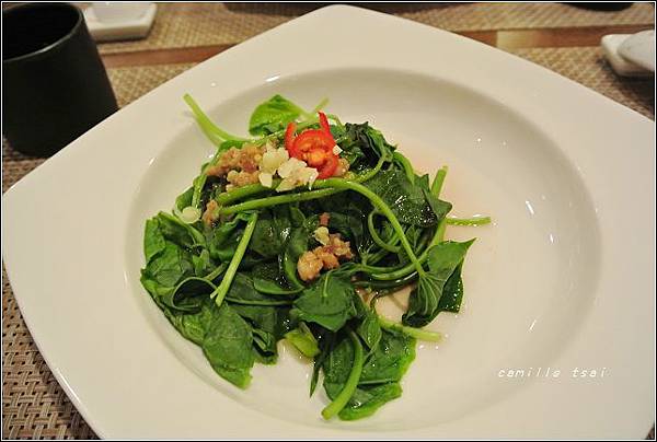 「那是因為我們燙好青菜後,有人三催四請才上桌