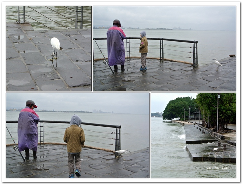 釣客將小魚扔向鵠立一旁的鷺鷥